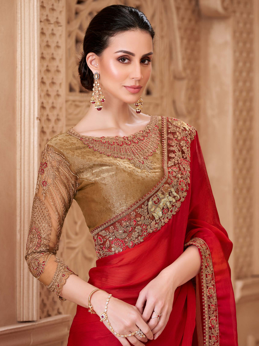 Ein eleganter Designersaree, der mit präziser Fertigung begeistert. Ideal für besondere Veranstaltungen.