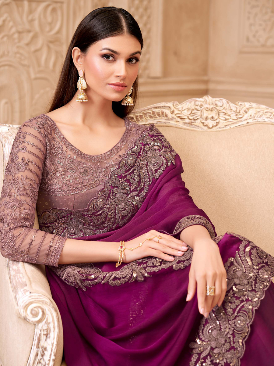 Dieser Designersaree bietet ein hochwertiges Finish und eine elegante Form. Ein stilvoller Begleiter zu festlichen Gelegenheiten.