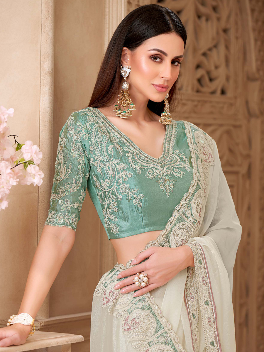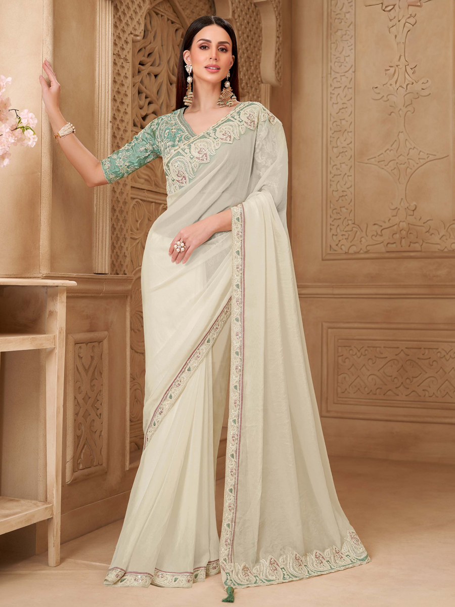 Ein hochwertiger Designersaree, der traditionellen Stil mit modernen Details verbindet. Perfekt für Frauen, die Wert auf Eleganz legen.