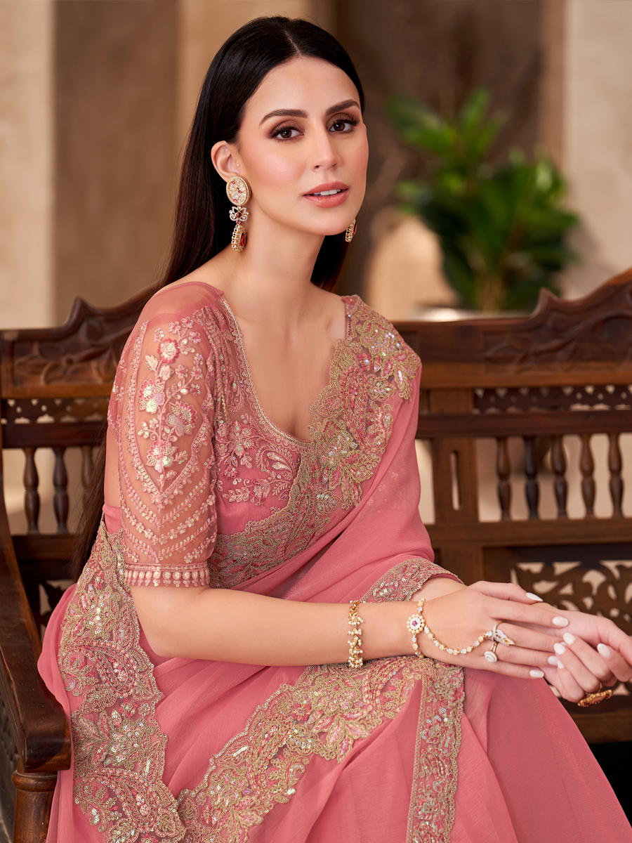 Dieser Designersaree zeichnet sich durch seine hochwertige Verarbeitung und dezente Gestaltung aus. Eine ideale Wahl für formelle Anlässe.