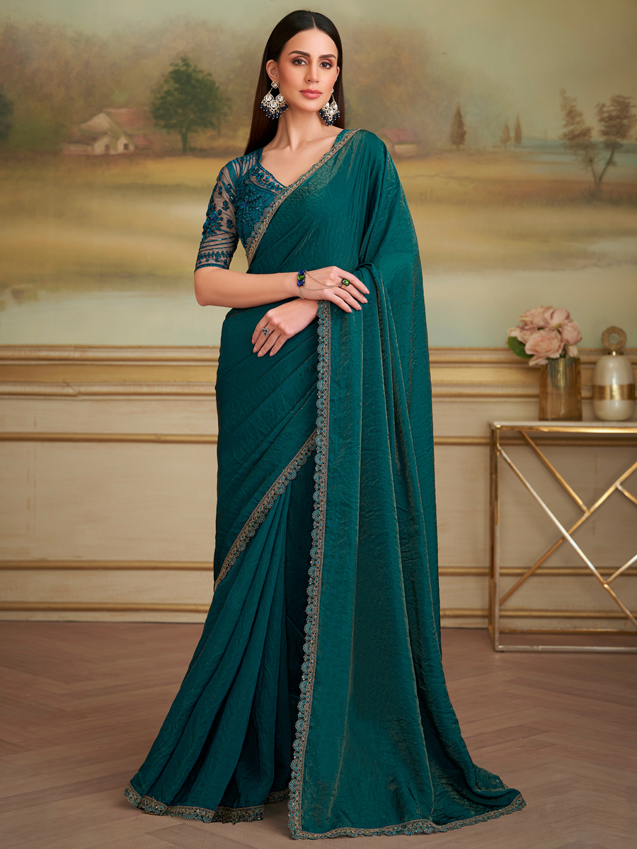 Hergestellt aus hochwertigem Stoff, bietet dieser Designersaree einen luxuriösen Look und angenehmen Tragekomfort den ganzen Tag über.