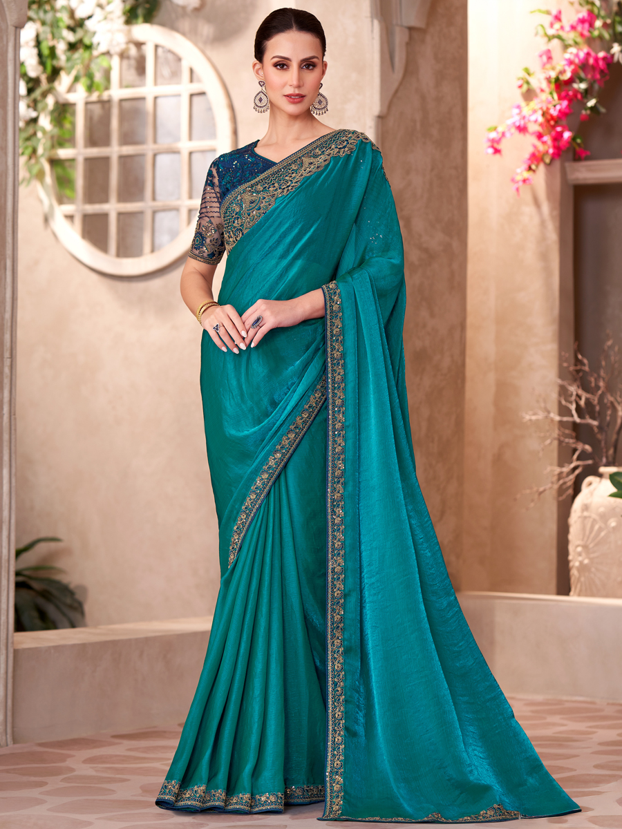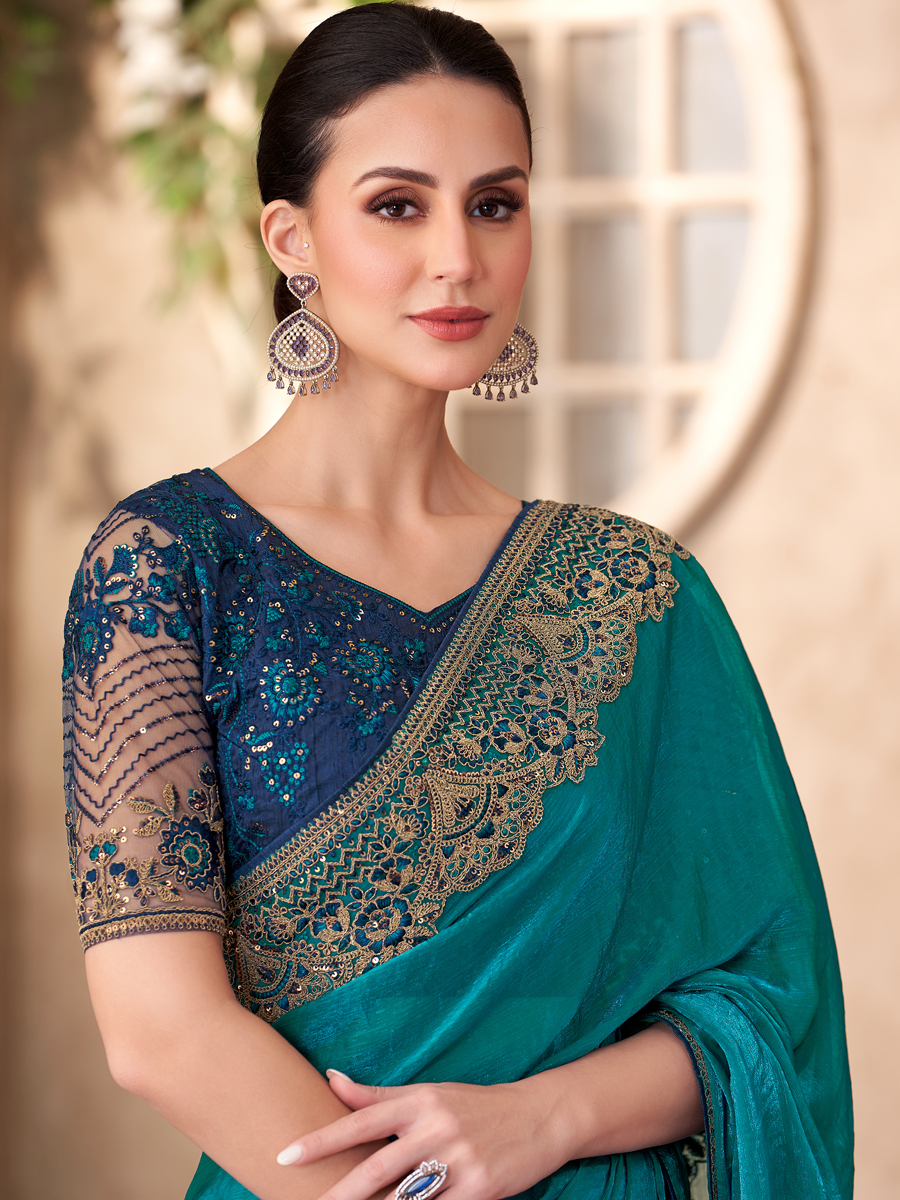 Dieser Designersaree besticht durch seine klare Struktur und sorgfältige Handarbeit. Ein edles Stück für modebewusste Trägerinnen.